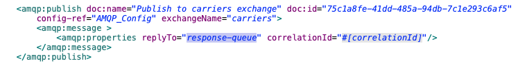 The message includes a replyTo channel so that the carriers know where to send there bids. When using RabbitMQ we can use the replyTo channel to transparently send the response to this queue from the carriers.