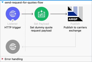 For this scenario we use an http endpoint to trigger the Mule flow. The flow sets a payload to send to the carriers. In reality, this dummy payload would contain information about the parcel and its destination.